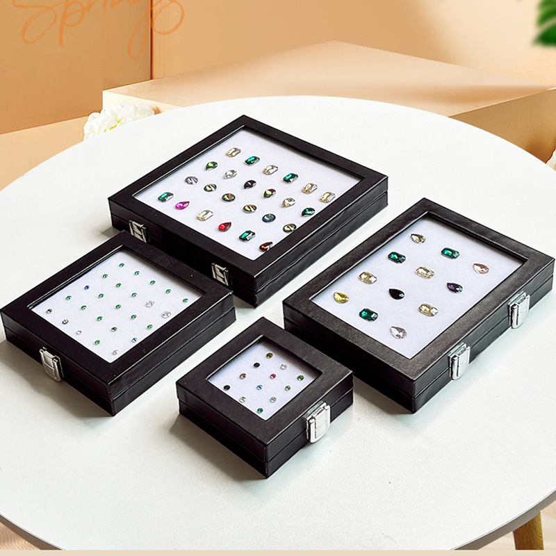 Plastic flip cover glass surface gemstone bare stone box
