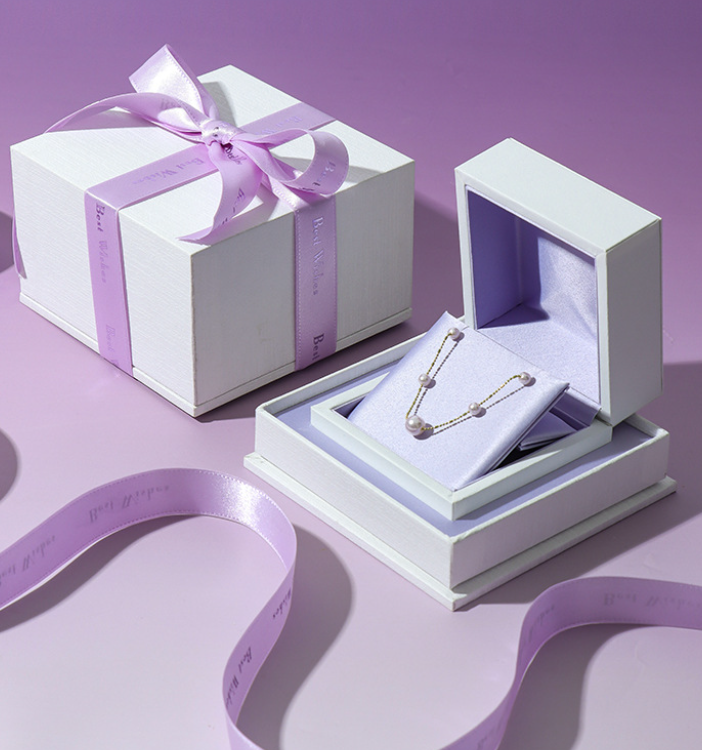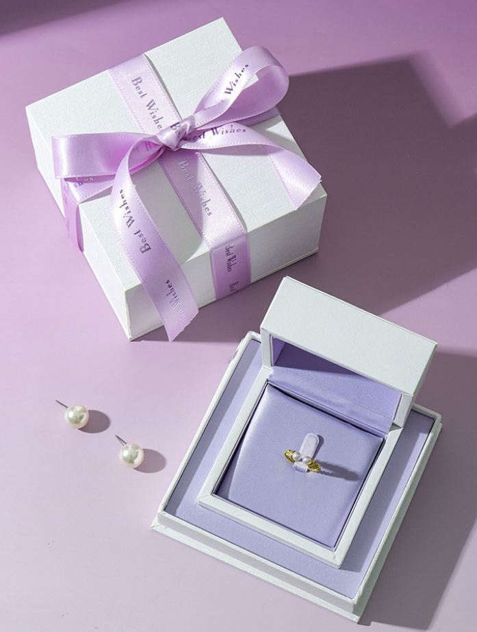 Custom Elegant Jewelry Cardboard Box Purple Paper Gift Packaging Box with Ribbon